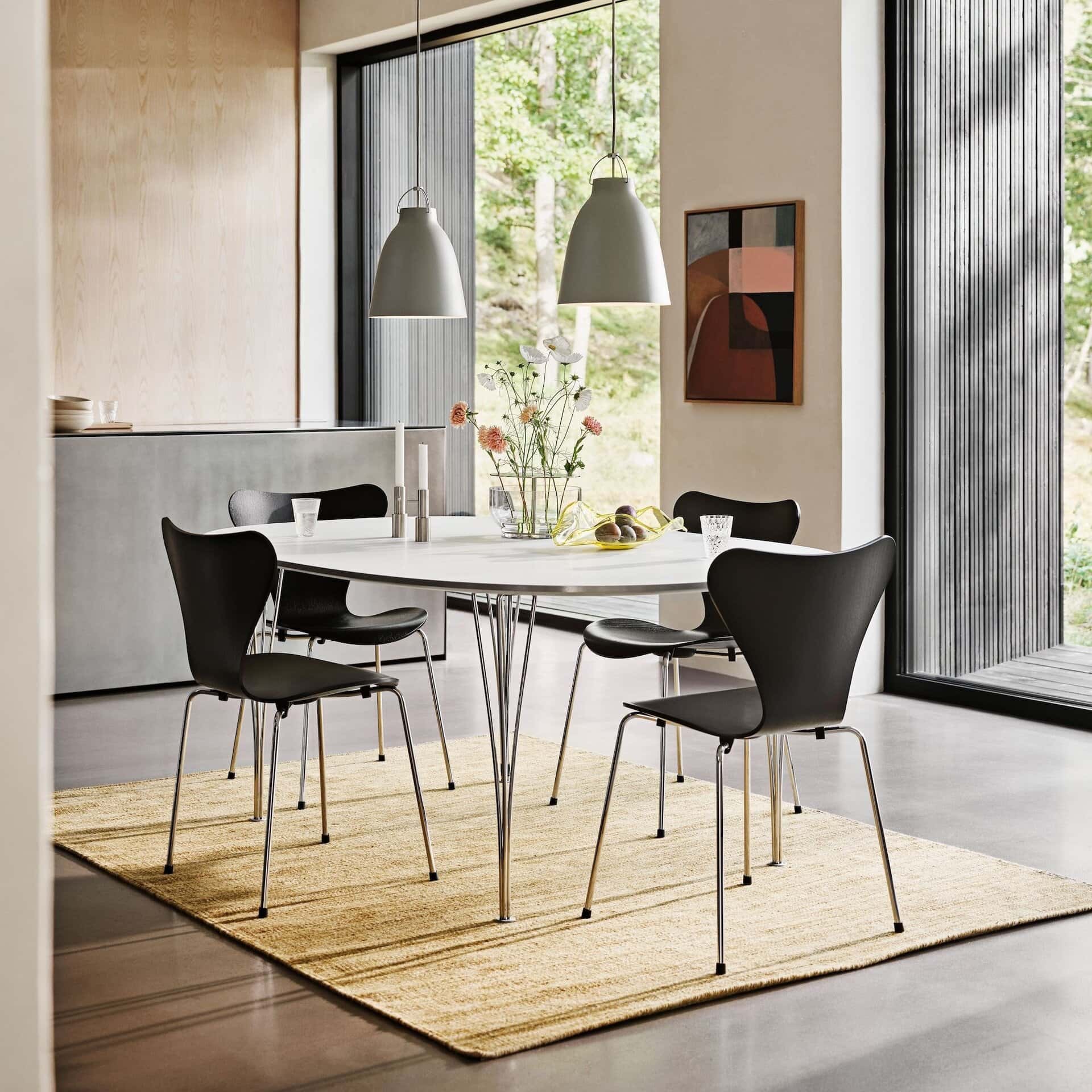 Além do mobiliário, a Fritz Hansen integra na sua coleção peças de iluminação e objectos decorativos pensados para harmonizar com os móveis e espaços modernos.